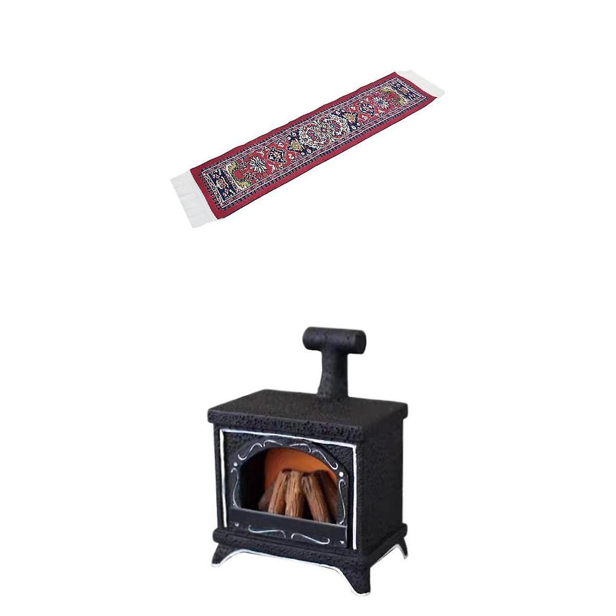 Dollhouse LED Fireplace with Rug 1:12 Black Dollhouse Decor