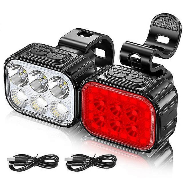 Bicycle Front Rear LED Light Set USB Charge Cycling Headlight Taillight Light 6/24 Lamp Bead Waterproof Aluminum Alloy Bike Lamp