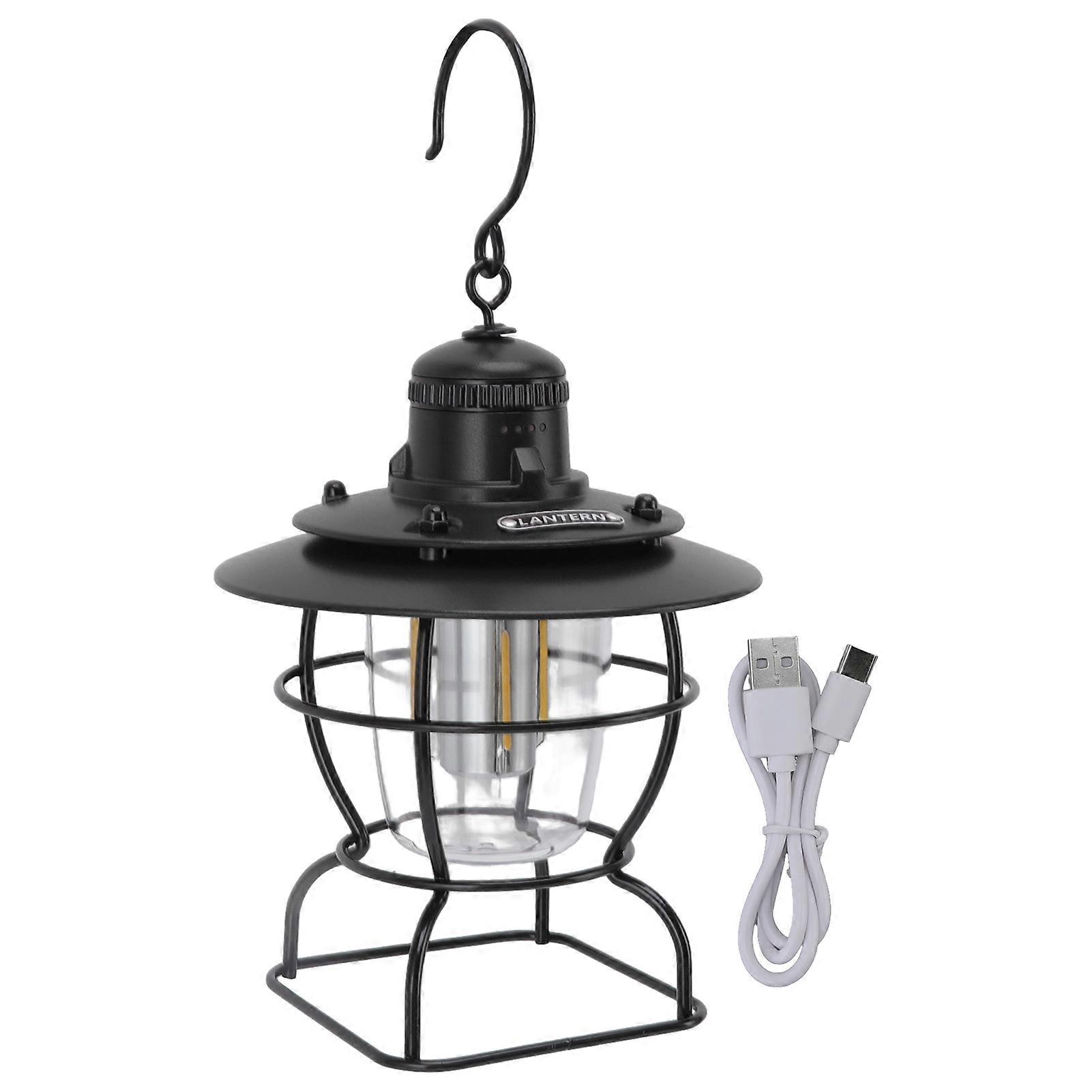 LED Camping Lamp Lantern Tent Lamp Searchlight Multifunctional Outdoor Portable Retro Style with Rechargeable Battery All Black
