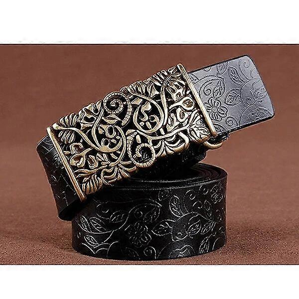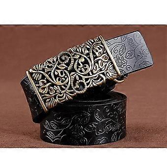 [LFMB]Belt For Women Waistband Cowskin Leather Lady Belt Vintage Pin Buckle Hollow Flower Fashion Woman Jeans Girdle Female