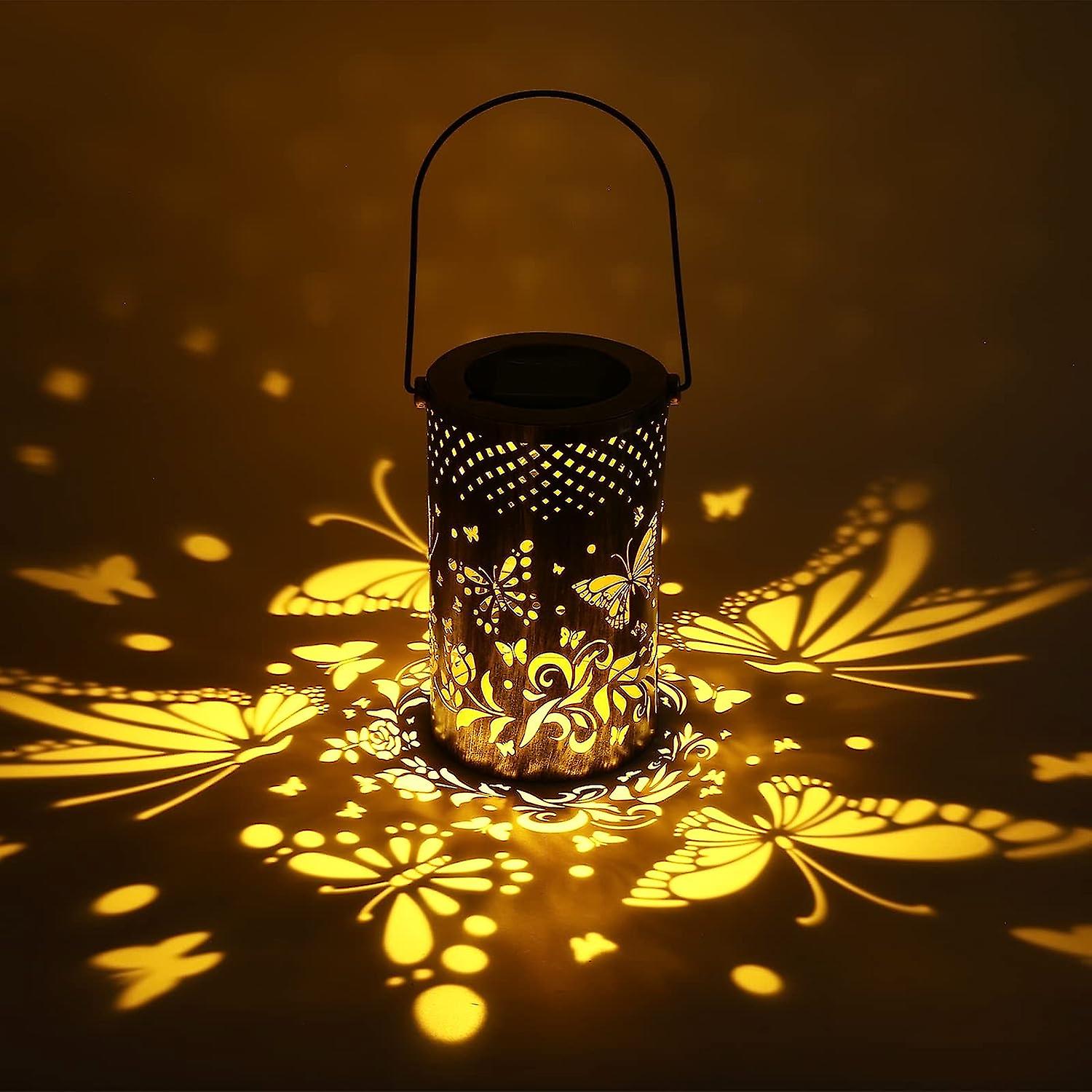Lightess Solar Lanterns For The Garden Waterproof, Solar Hanging Lanterns Outdoor, Metal Led Outdoor Solar Powered Lights Butterfly Decorative For Gar