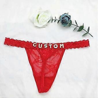 חוטיני מותאם אישית עם אותיות זהב שם סקסי תחרה תחתונים בהתאמה אישית