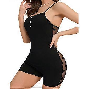 רצועת ספגטי צווארון U סרבל שקוף מכנסיים קצרים הלבשה תחתונה לנשים בגדי גוף עם בד נושם לכותנות לילה אדום XL