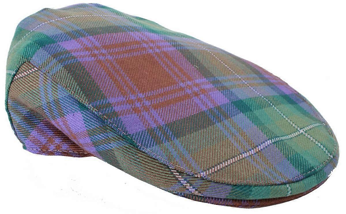 Locharron of Scotland Barnton Isle of Skye Tartan Flat Cap - Green/Lilac Purple