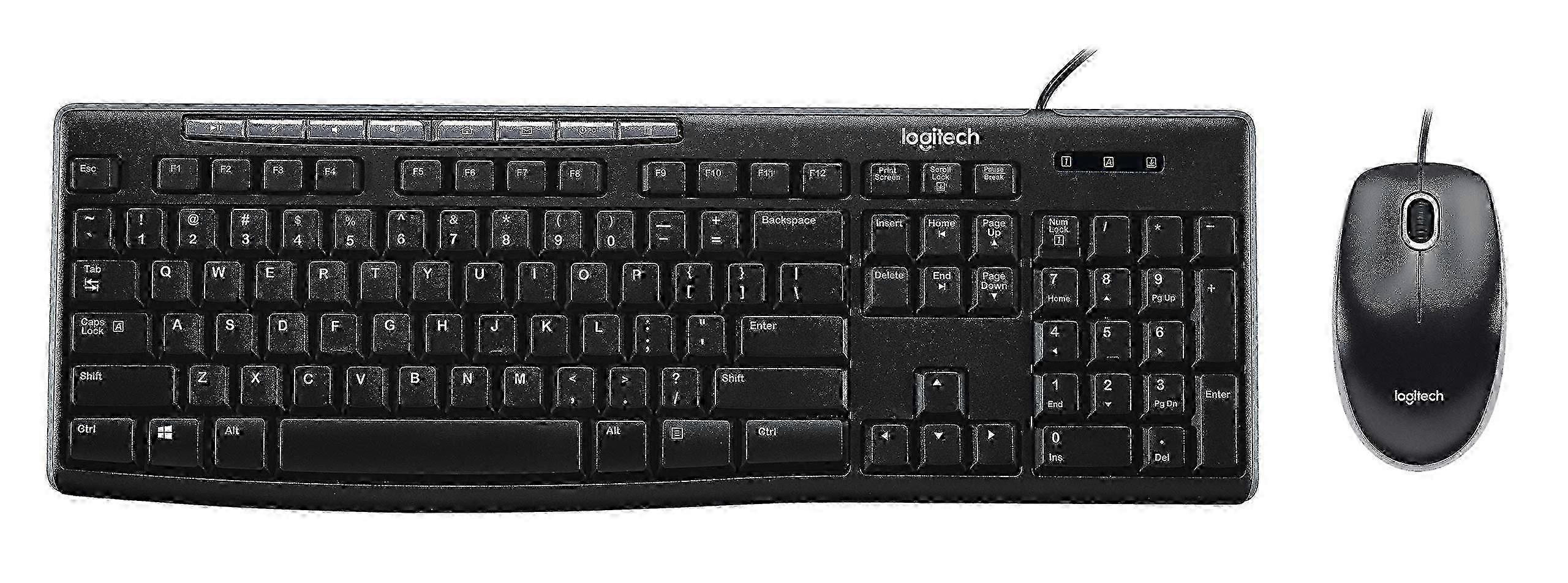 Logitech Media Combo MK200 Full-Sized Keyboard with High-Definition Optical Mouse, Wired, USB, Black Color