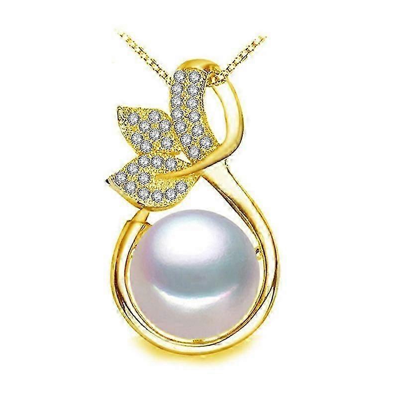 LSOOYH Fashion 10-11mm Freshwater Pearl Ring For Women Cubic Zirconia Luxury Gold Color Leaf Necklace Natural Pearl Jewelry
