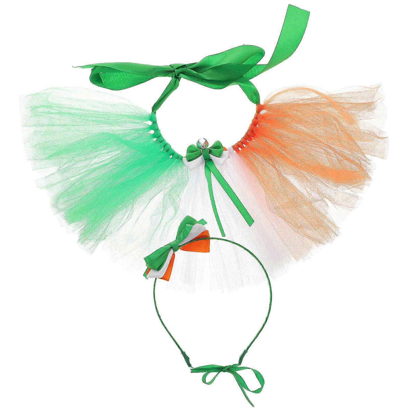 Masteelf 1 Set Lovely Pet Gauze Skirt and Headband for St Patrick's Day Pet Decorative Props