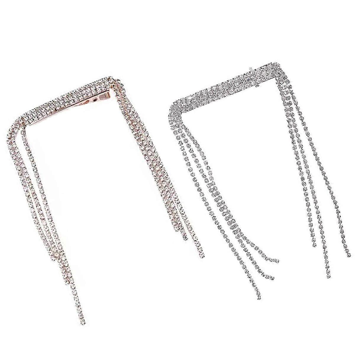 Masteelf 2pcs Rhinestone Hair Clips Chain for Girls Wedding Brides Accessories
