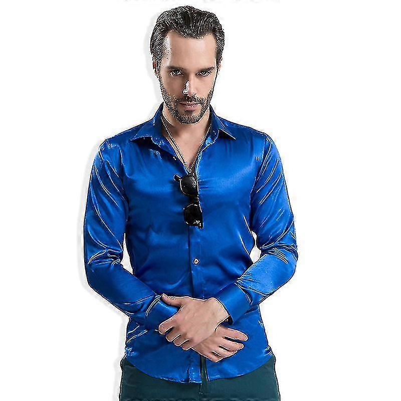 Mens Luxury Shiny Silk Like Satin Shirt Long Sleeve Slim Fit-YuJia