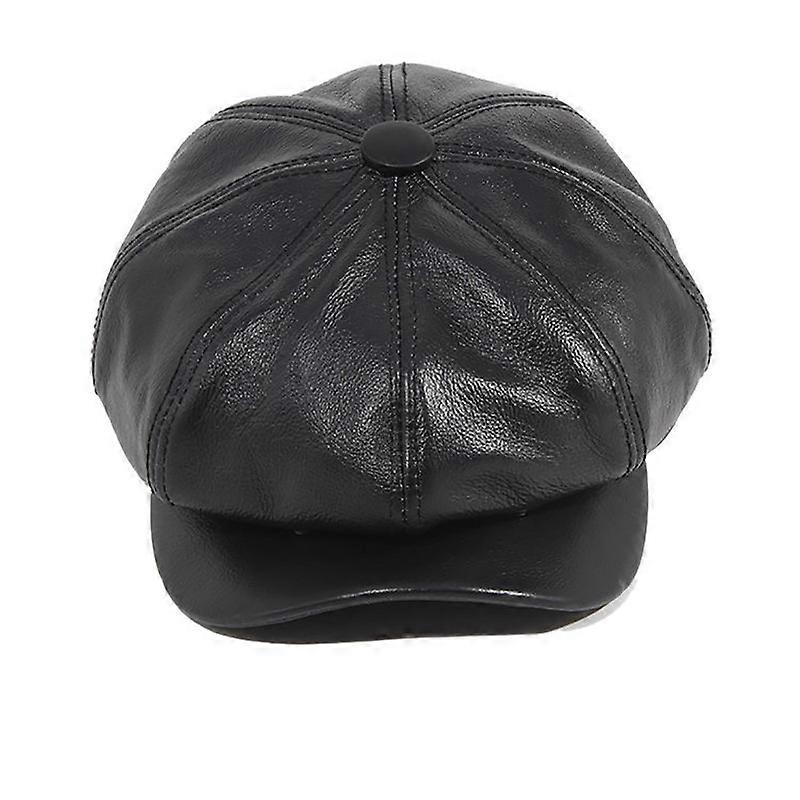 MIMIGO Men Cowhide Newsboy Cap - Brown Genuine Leather Octagonal Hat Cowskin Autumn Winter British Style Fashion Beret