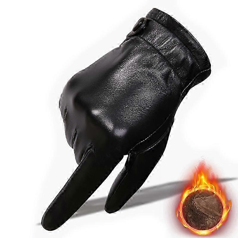 MIMIGO Genuine Goatskin Leather Winter Gloves for Men Windproof Cold Weather Gloves Touchscreen, Anti-SlipThermal Gloves for Winter Driving, Cycling