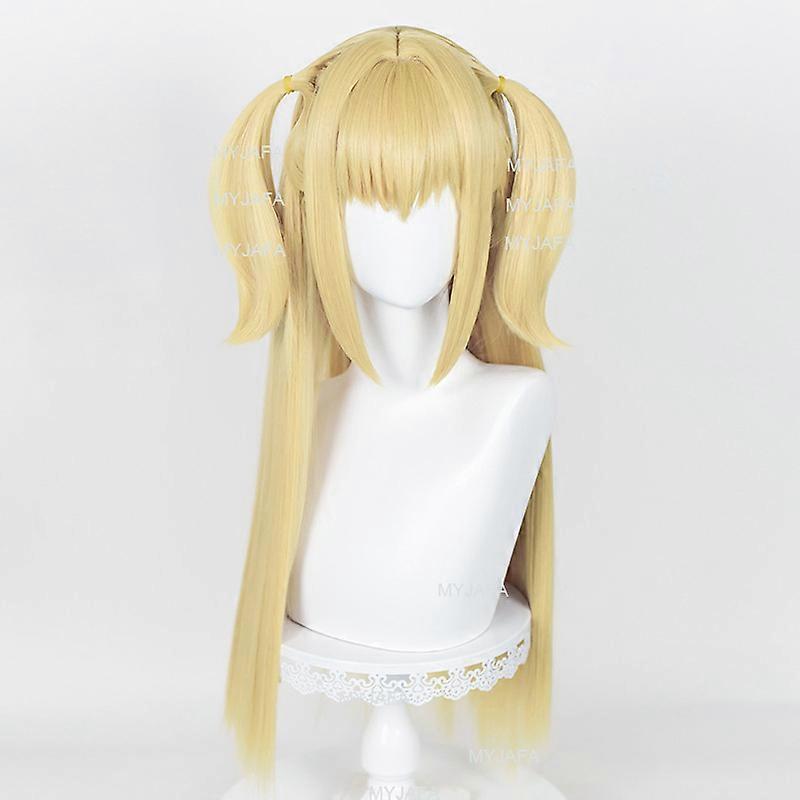 Misamisa Cosplay Wig Anime Death Note Cosplay Misa Amane Golden Long Heat Resistant Hair Wigs + Wig Cap + Necklace