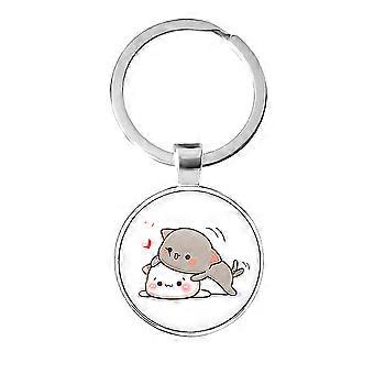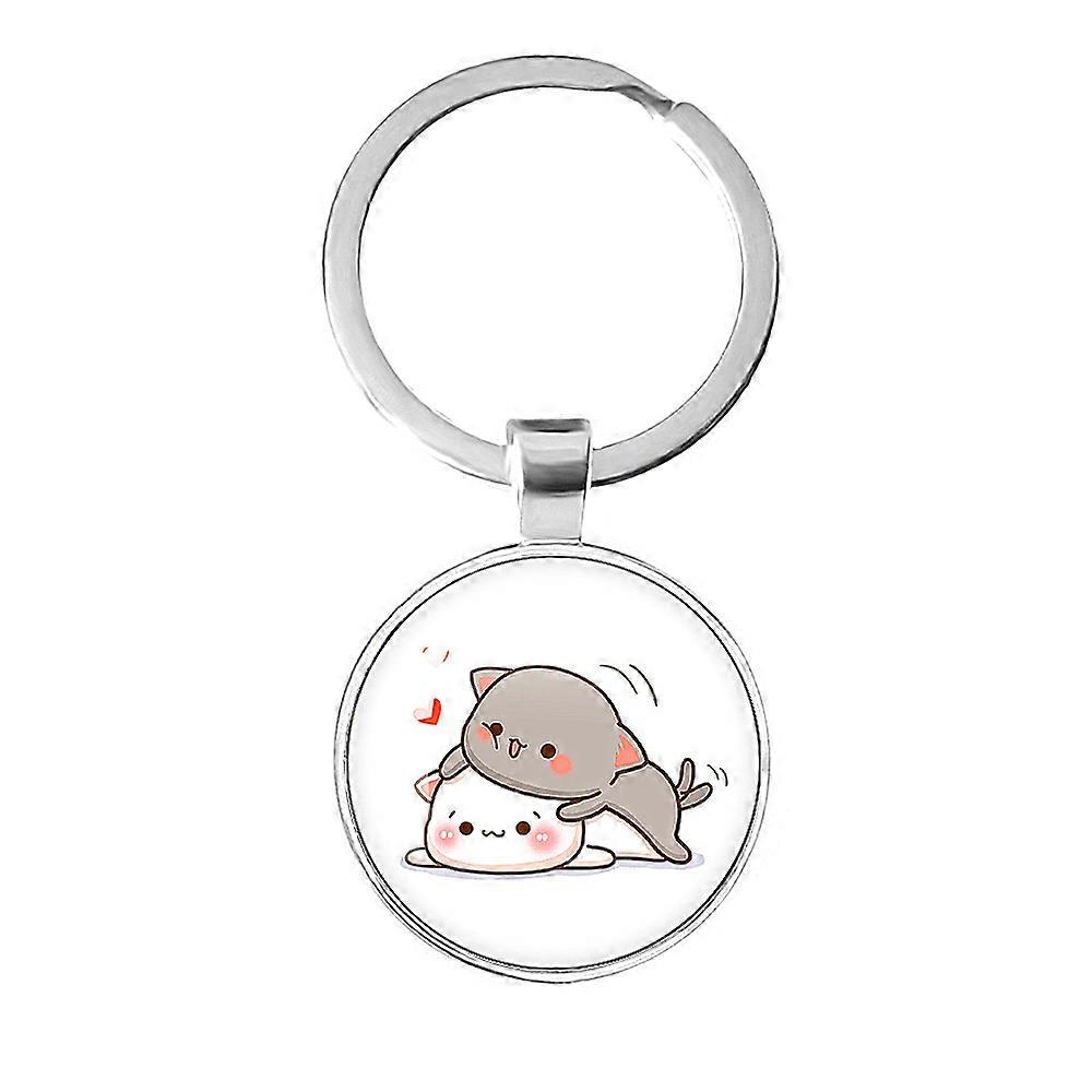 Mitao Cat Glass Charm Keychain Cute Couple Peach Cat Schoolbag Ornaments Cat Pendant Charm Keyring Jewelry Gifts For Friends