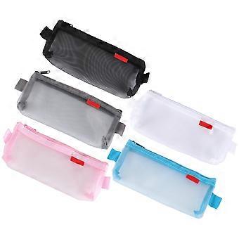Multi-Functional Mesh Pencil Case Pen Organization Rectangular Simple Design Teachers School Use Transparent Mesh 5Set