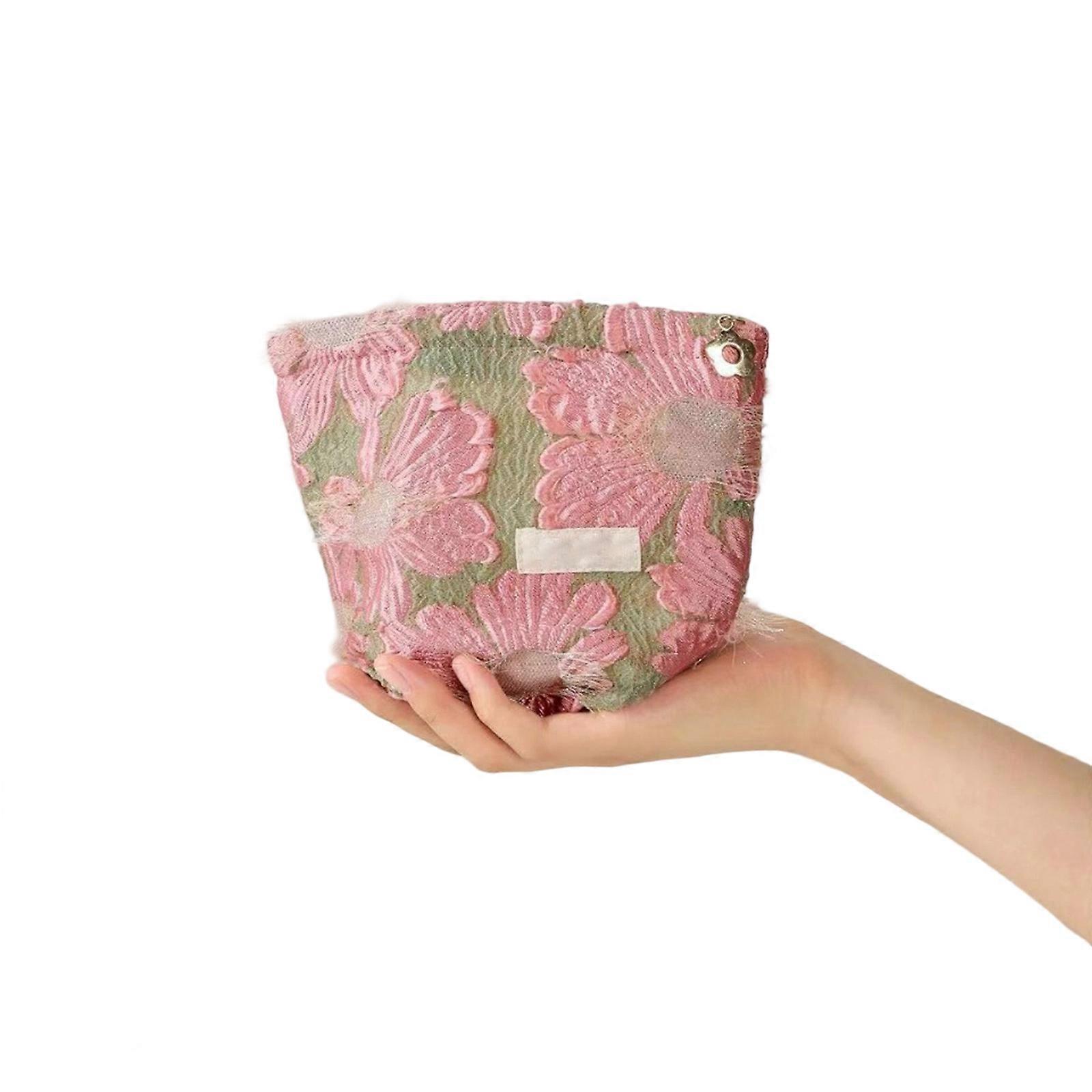 Multipurpose Cosmetic Bag Pink Flower Pattern Polyester Toiletry Bag Large Capacity Efficient Storage Solution S
