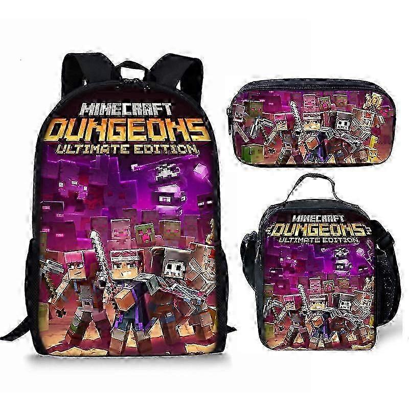 My World Square Bag Three-piece Set Lunch Bag Pencil Case Backpack Backpack