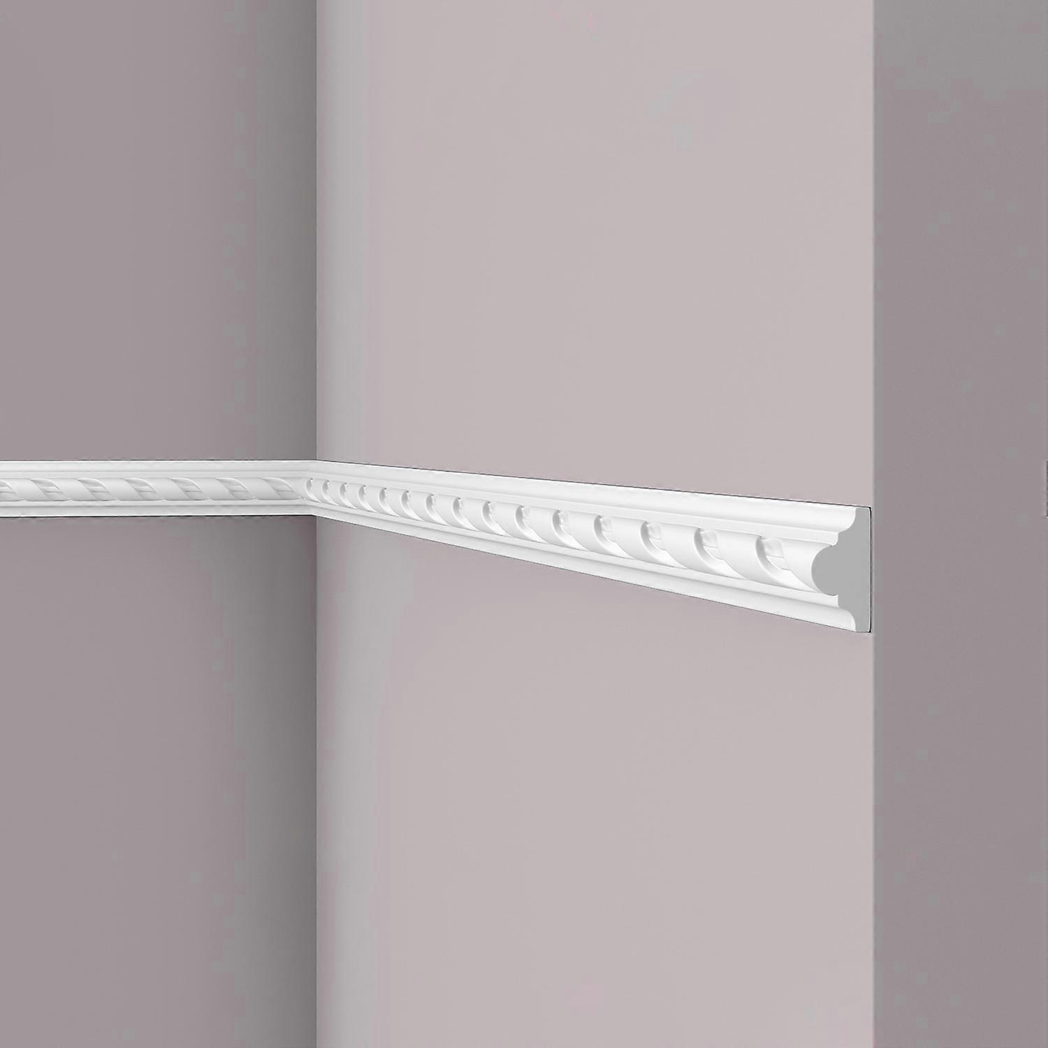 NMC 1 x Moldura para pared WO2 WALLSTYL 200 cm x 1,8 cm x 3,8 cm blanco Poliestireno extruido (HDPS) pretratado ligero, estabilidad dimensional, resis