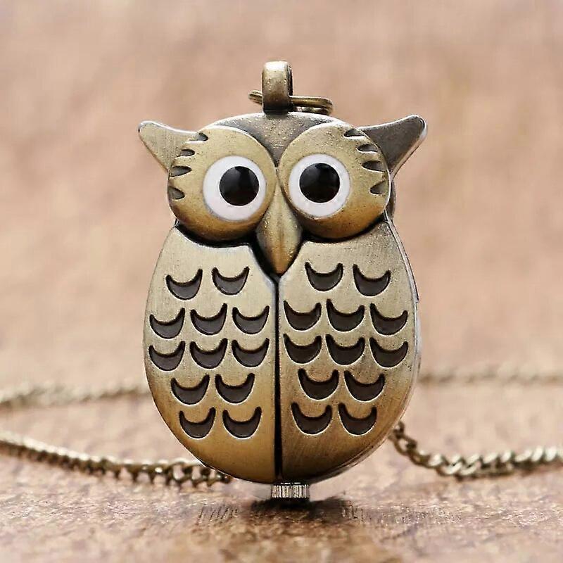 Bronze Night Owl Necklace Pendant Quartz Steampunk Pocket Watch Chain for Men Women P27