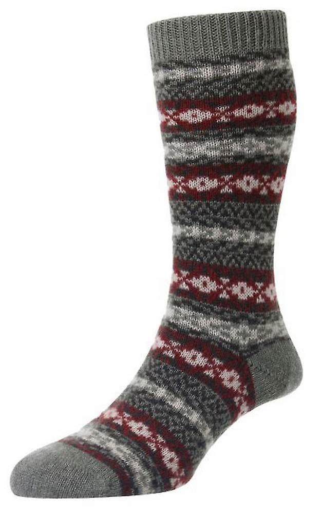 Pantherella Bradstock Traditional Fair Isle Cashmere Socks - Light Olive Mix