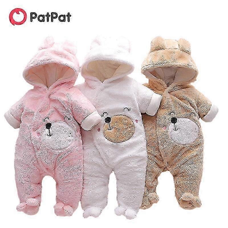 Patpat New Arrival Winter Baby Bear Warm Fleece Hooded Jumpsuit Baby Rompers Baby Warm Clothing