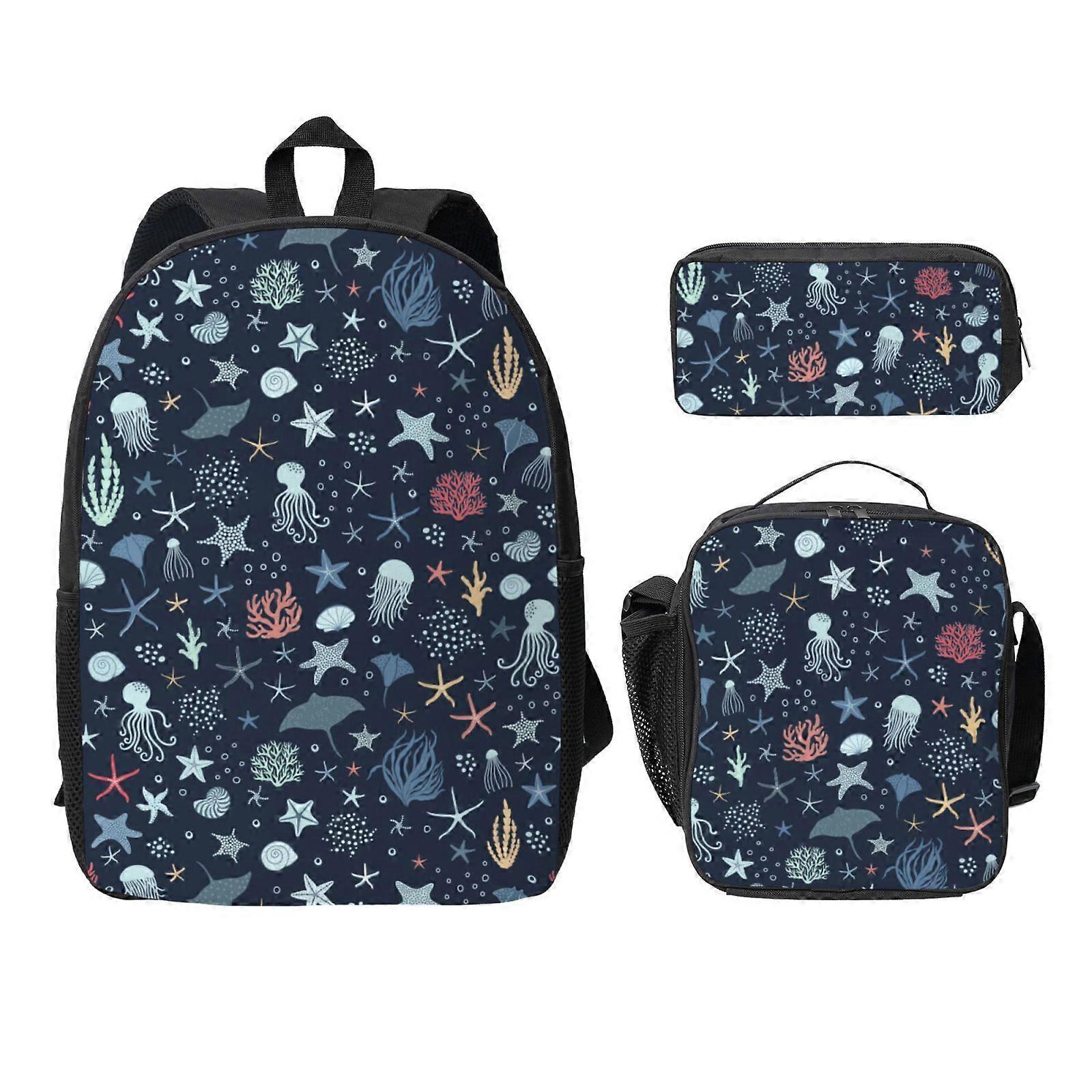 pattern Backpack Lunch Bag Pencil Case 3 Pcs Set with Mesh Pocket