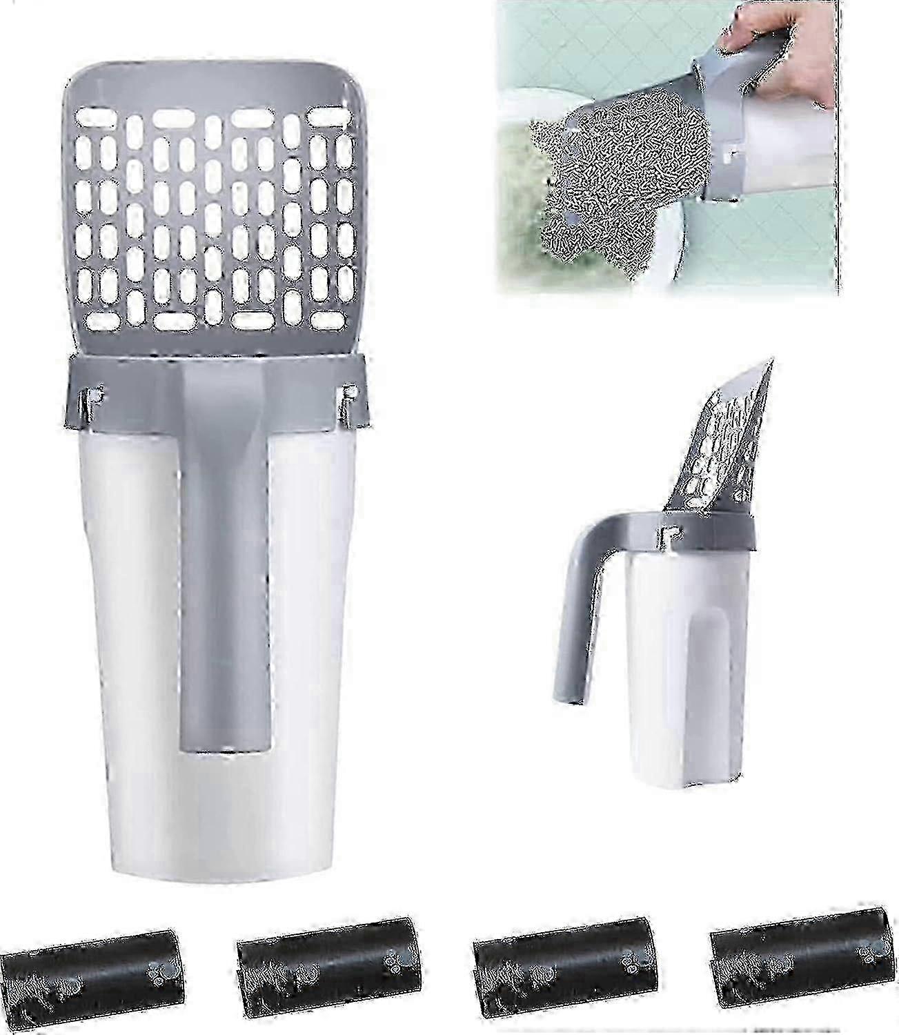 Pooper Scooper Integrated Cat Litter Sifter Scoop System, Detachable Deep Shovel Holder