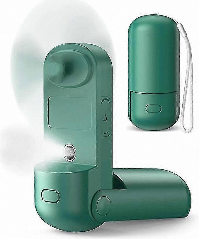 POWERFUL 3 IN 1 PORTABLE FAN: Features a foldable design adjustable from 0 to 270 degrees, allowing the fan to be used as a handheld fan, desk fan, or misting fan. This compact portable fan delivers a cooling and refreshing breeze during hot weather. 3 ADJUSTABLE SPEEDS; LONG WORKING TIME: Equipped with 3 adjustable speed settings that can be easily controlled with a button press. The built-in 1500mAh battery provides up to 20 hours of runtime on low speed, 13 hours on medium speed, and 6 hours on high speed, offering extended use for outdoor activities. FOLDABLE AND PORTABLE: The foldable design allows versatile positioningset at 180 degrees for handheld use or 270 degrees for use as a desk fan. Measuring 4.8 x 2.2 x 1.7 inches and weighing only 0.42 lb, this lightweight personal fan comes with a lanyard for easy carrying in pockets or around the wrist, ideal for camping, travel, and daily use. MISTING FUNCTION: Long-press the button to activate the misting feature, which releases a fine spray to help lower body temperature. Ideal for refreshing the skin after exercise or maintaining comfort in dry conditions. The fan sprays mist intermittently when turned on. The built-in 15ml water tank provides up to 1.5 hours of misting operation when fully filled. RECHARGEABLE AND SAFE: Charges via USB using a power bank, computer, laptop, or USB charger. Can operate while charging. Fully charges in approximately 1.5 hours. The fan blades are made of soft, safe material and automatically stop rotating if touched, providing added safety. Packing List: Portable Handheld Fan x 1, Charging Cable x 1, Water Bottle (15ml) x 1, Lanyard x 1, User Manual x 1