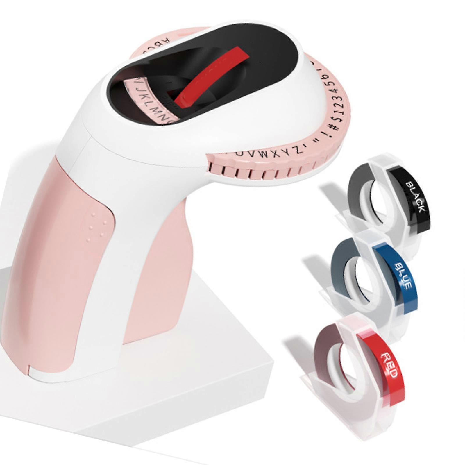 Portable Label Printer with 48 Characters Wheel Multipurpose Mechanical Handheld Labels Sticker Maker Label Printer Pink