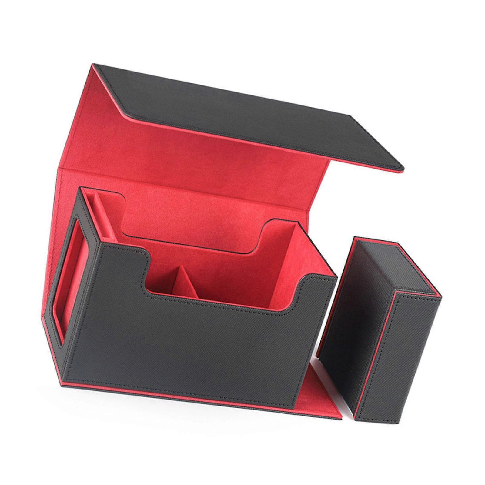 PU Trading Card Deck Storage Box with Dice Tray Card Deck Case Organizers Collectible Game Card Collectors Storage Case Black red