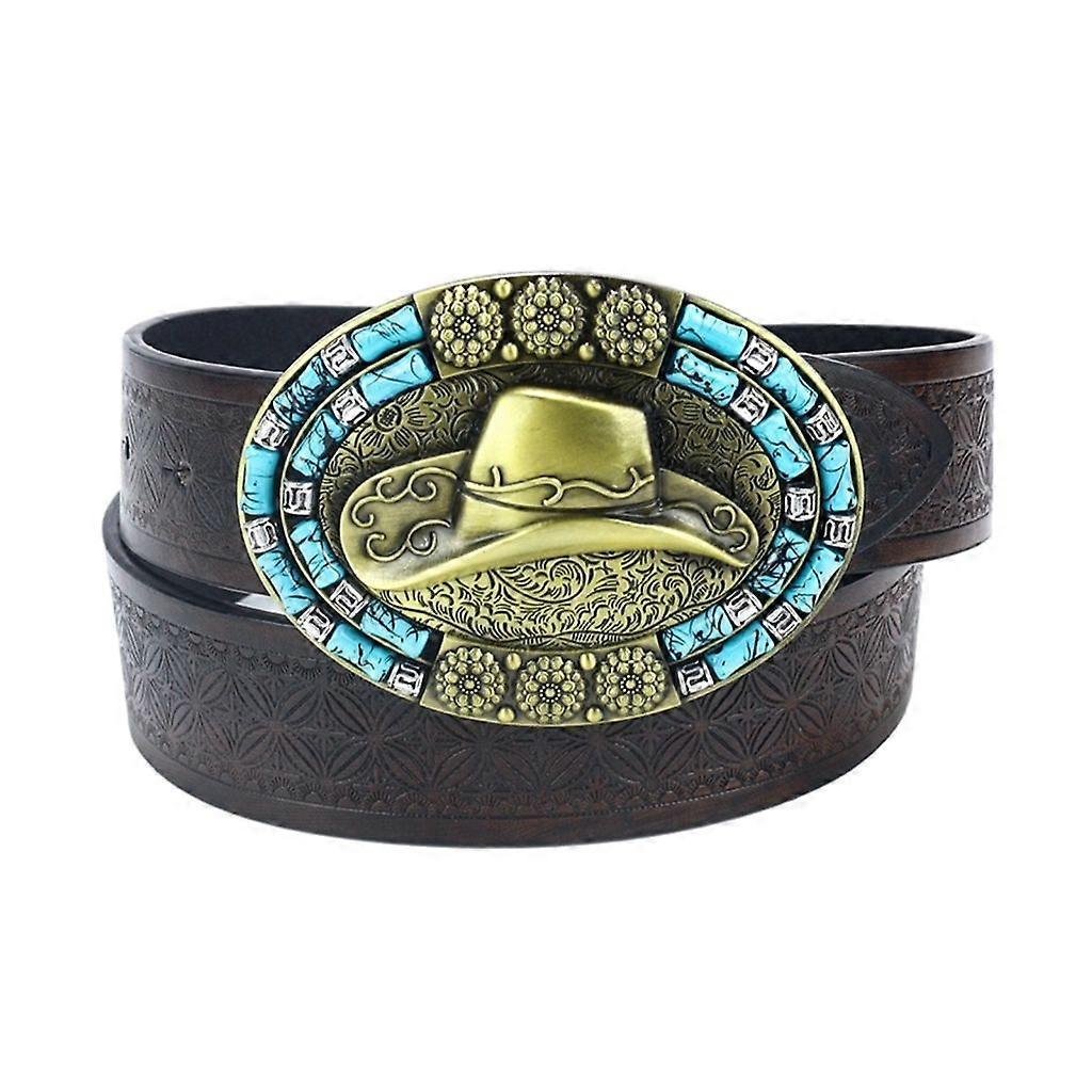 PU-Leather Teens Man Cowboy Belt Adjustable Waist Belt for Trousers Non-slip