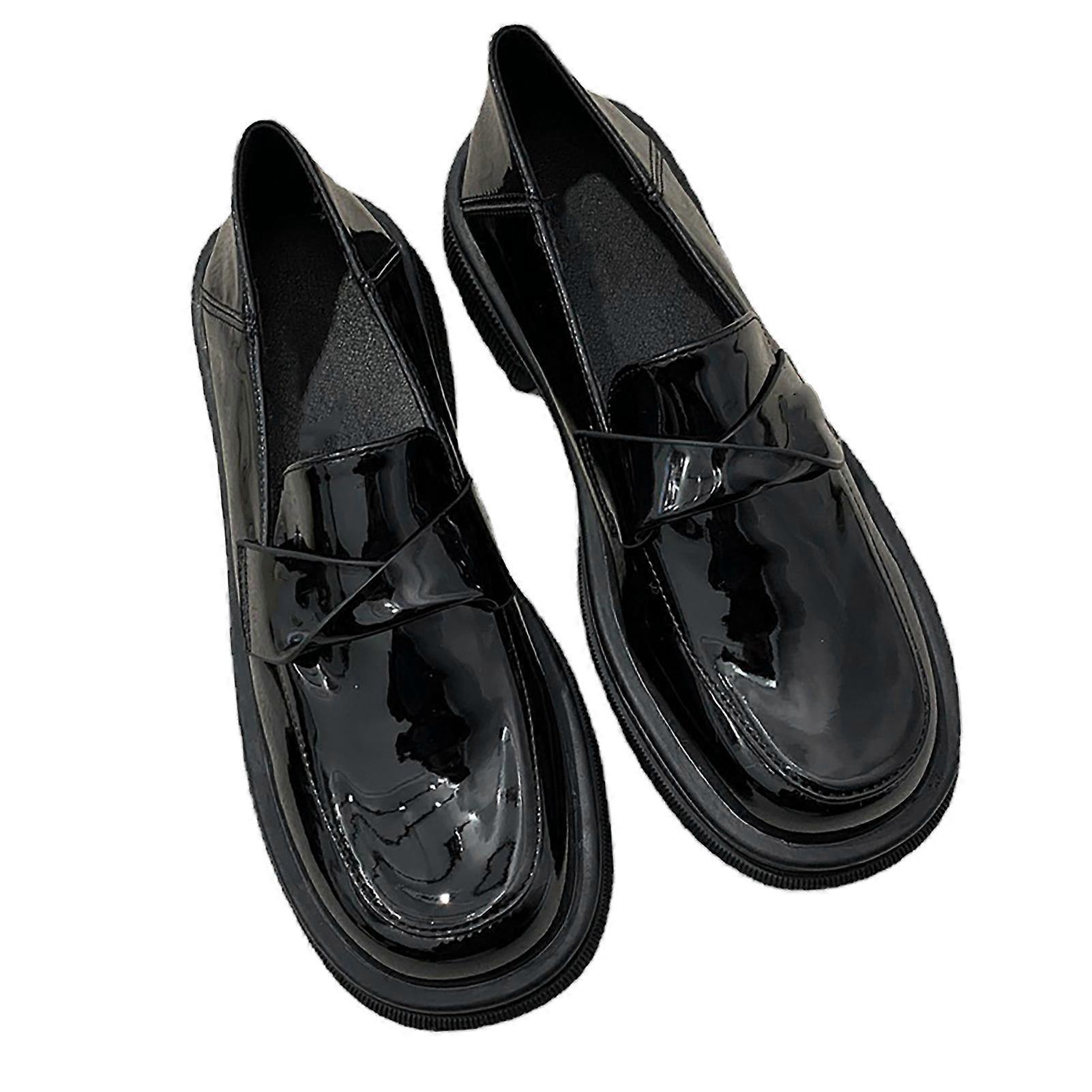 Women Dress Shoes Slip On PU Leather Footwear Classic Black Heeled Footwear Casual Shoes