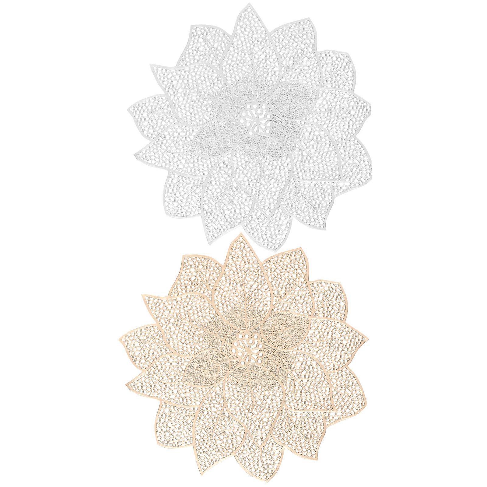 PVC Placemats Flower Shaped Dinner Table Accessories Heat Resistant Gold 38.00X38.00X0.10CM 2Pcs
