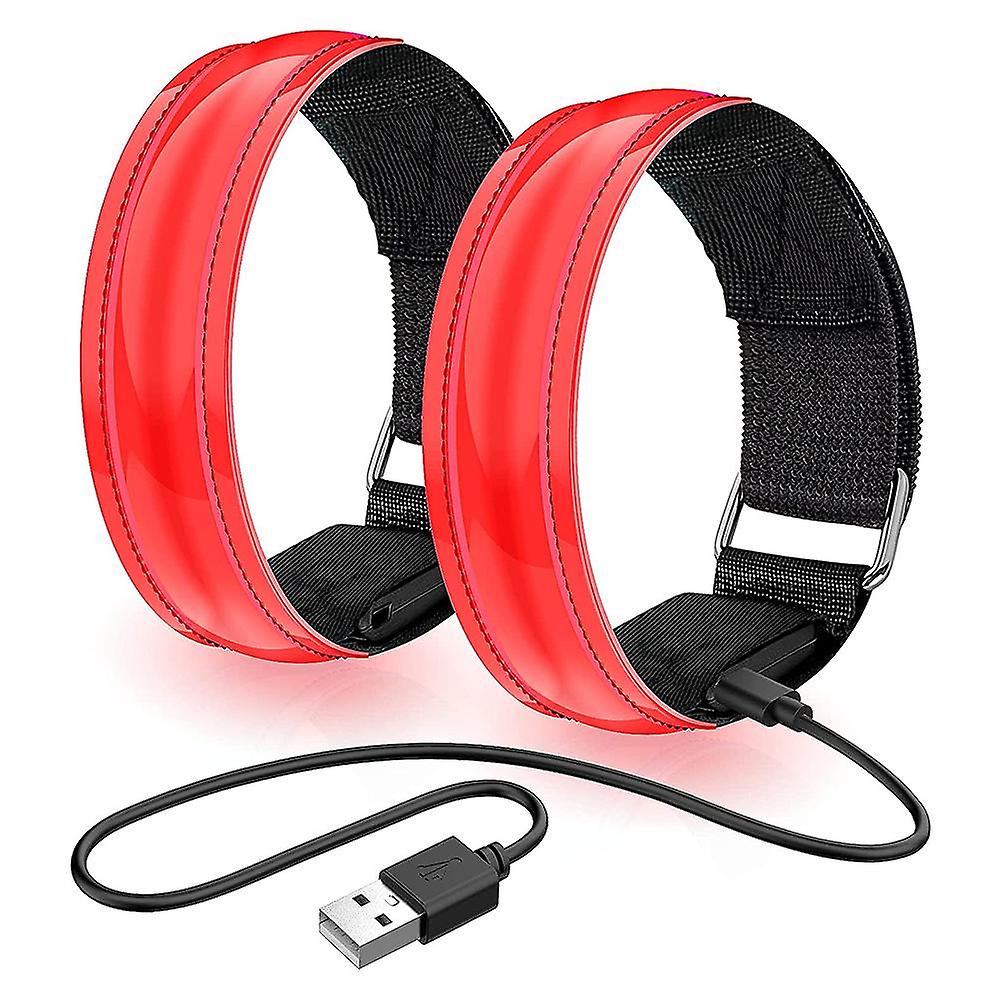 Pxcl 2pcs Rechargeable Led Light Armband, Reflective Led Running Armband, Adjustable Flashing Band Safety Led Light Wristband For Kid Or Adultred Elas
