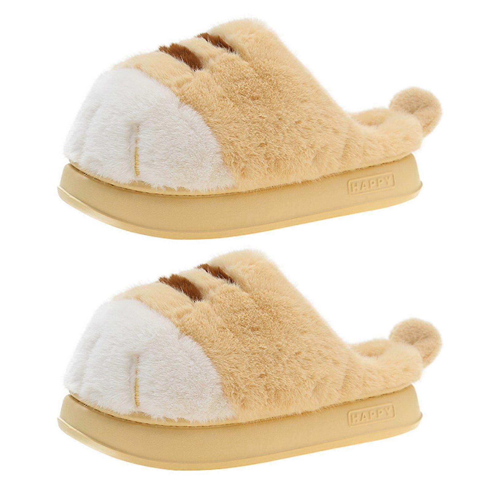 Qinghai 1 Pair Winter Plush Slippers Thick Non-Slip Insoles Cartoon Cat Design Keep Warm Footwear Thickened Home Dorm Street Wear Slippers