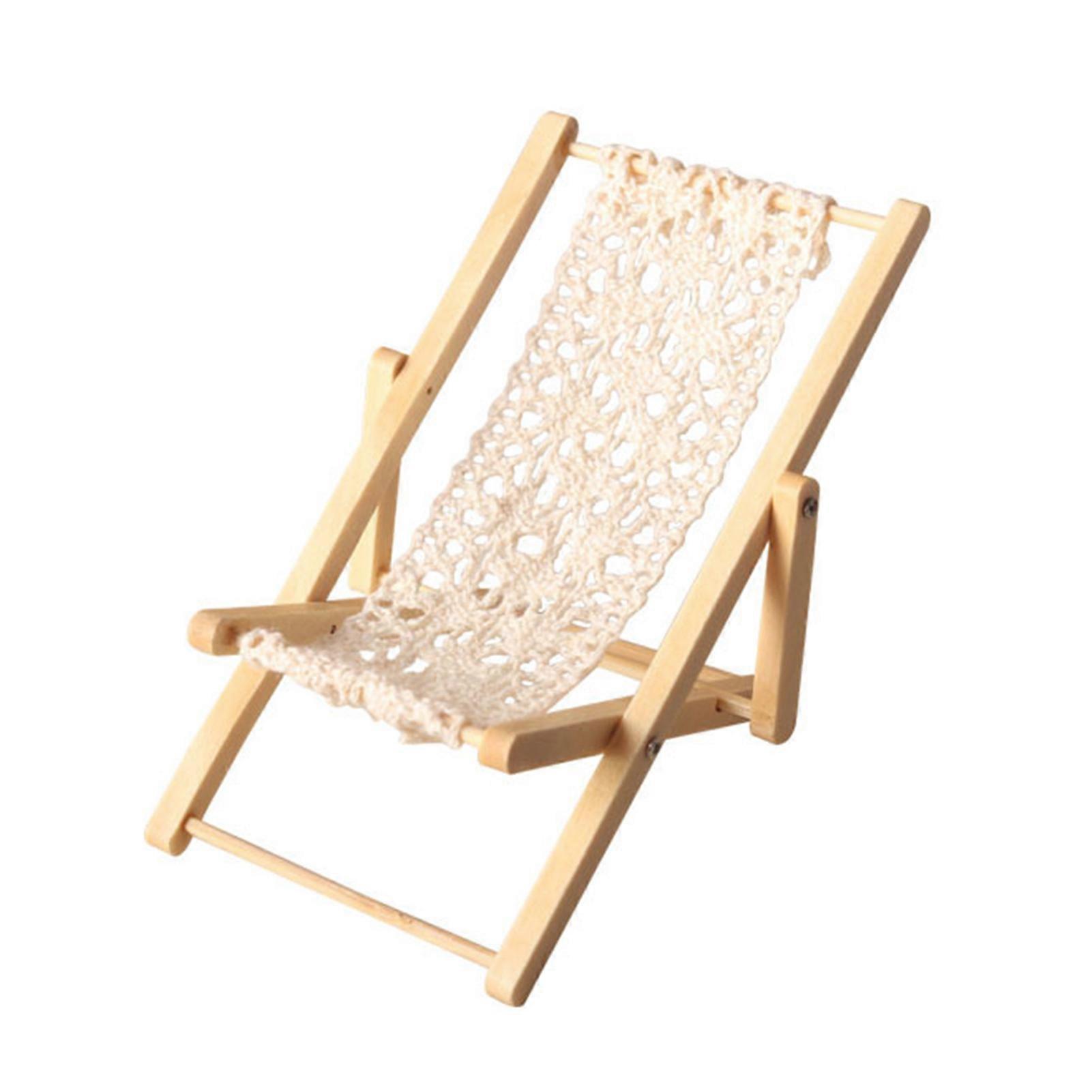QingHai Dollhouse Furniture High Simulation Dollhouse Craft Dollhouse Beach Wooden Lounge Chair Dollhouse Accessories