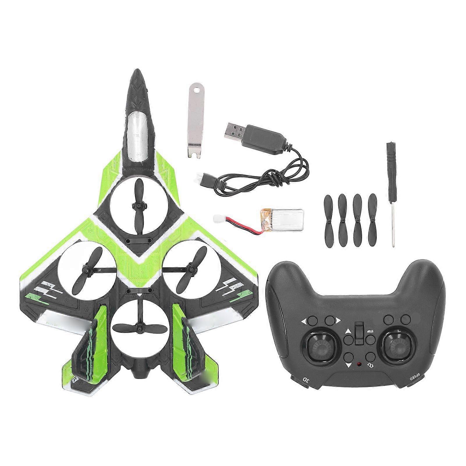 1、Adjustable Speed: With three level speed switch, you can select the flight gear according to the personal operation proficiency, so that novices can quickly get started and use more safely. 2、Aerial Stunt: It only needs one click operation to achieve 360 degree aerial roll of the drone, allowing for a thrilling flight experience and impressive aerial displays. 3、Strong Power: The RC quadcopter plane is designed with four turbofan structure, ensuring surging power, stronger output, and more fun flight experience. 4、Barometric Height Setting: Equipped with advanced barometric technology, the RC airplane can automatically maintain a consistent altitude and stably hovering. 5、Rechargeable Battery: 3.7V large capacity rechargeable battery, longer flight time, removable design makes it easier to replace the battery each time Item Type: RC Foam Airplane Material: EPP Each Drone Battery: Lithium battery 500mAh (shipped with supporting batteries) Remote Control Distance: 50 - 60m / 164 - 196.9ft Signal: 2.4G Remote Control Battery: AAA Battery x 3(shipped without battery) A single battery lasts about 8 minutes 1 x Drone 1 x Remote Controller 4 x Spare Propellers 1 x Charging Cable 1 x Screwdriver 1 x Propeller Removal Tool 1 x User Manual 1 x Battery