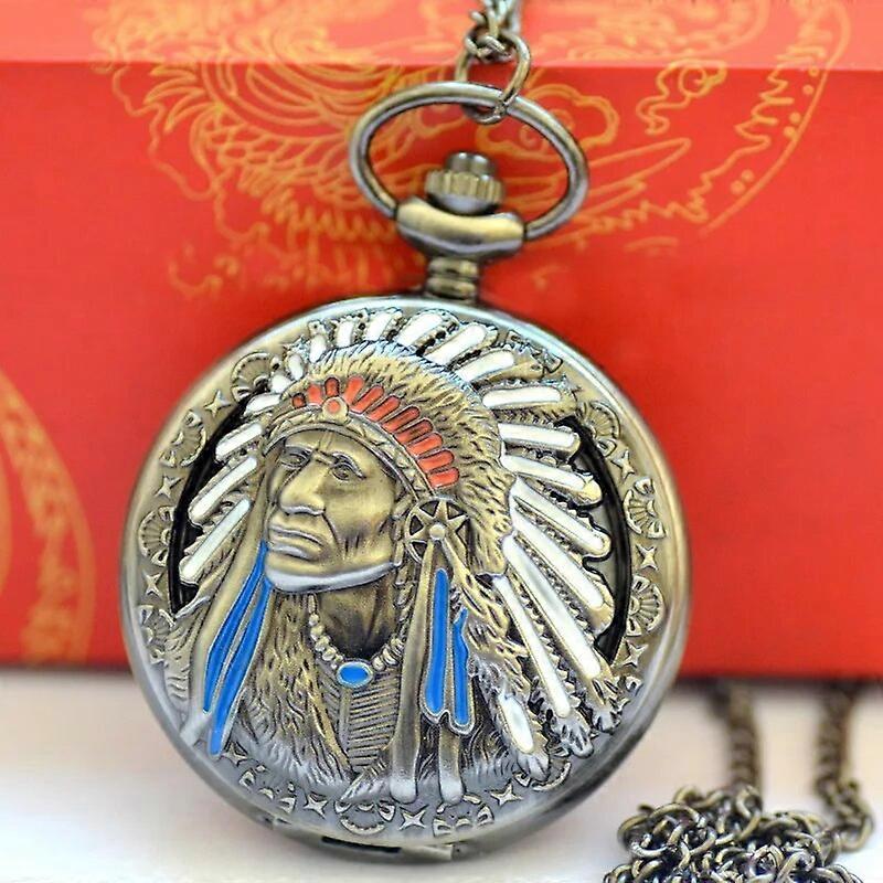 New Bronze Vintage Retro Wall Watch Indian Pattern Pocket Watch Necklace Pendant Men Women Watches Quartz Watches Relogio