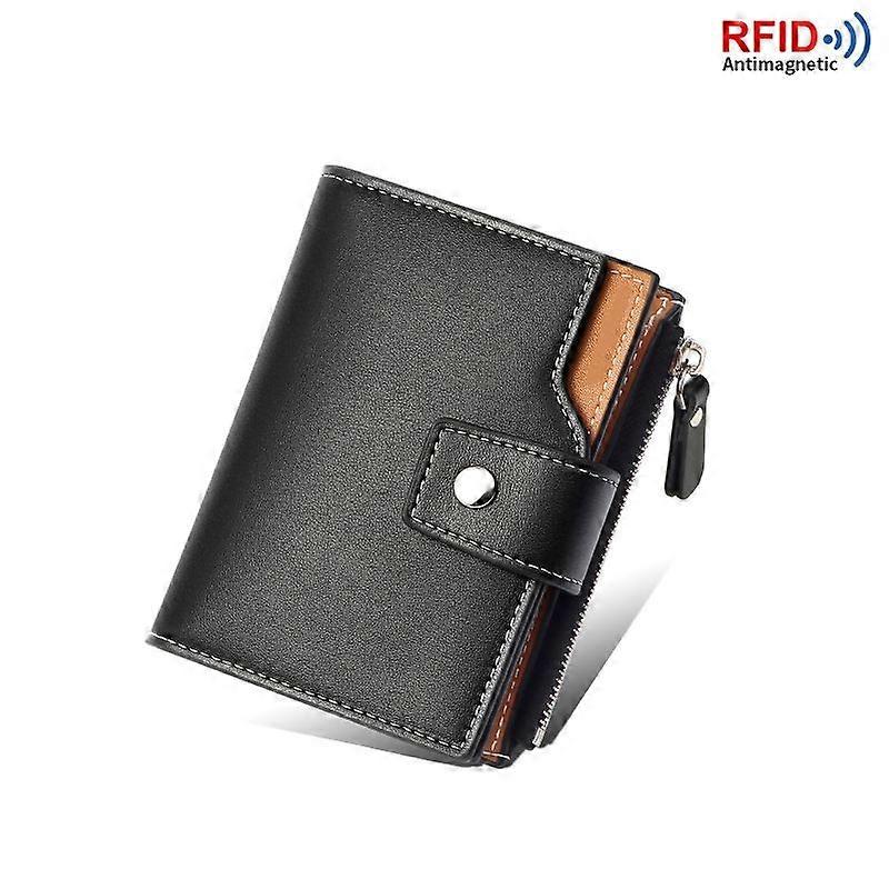 RFID Multifunctional Zipper Coin PU Card Holder, Anti-Theft New Men's Leather Short Bifold Wallet Black
