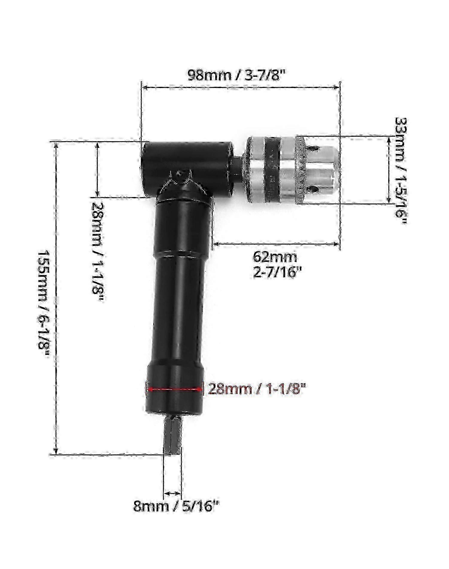 Right-Angle Drill Adapter Cordless 90° Keyed Chuck 8mm Hex Shank w