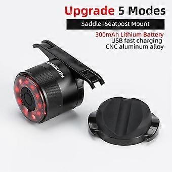 ROCKBROS אופניים חכמים פנס אחורי אוטומטי התחלה/עצירה חיישן בלם IPx6 עמיד למים LED Type-C נטענת פנס אביזר אופניים