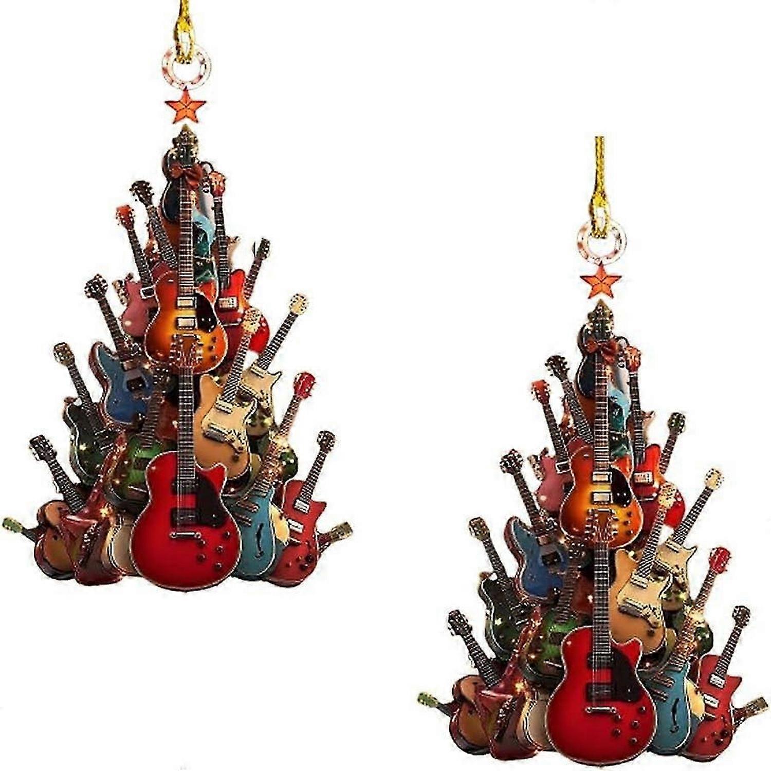 Rockin' Around The Guitar Christmas Tree Ornament, 2D Premium Acrylic Rock Guitar Christmas Tree Ornament, Guitar Musical Instrument Ornament Gift for