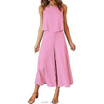 Roylamp בגדי ריקוד נשים קיץ 2 חתיכות תלבושות צווארון עגול חיתוך בסיסי עליון חתוך מכנסיים רחבים סט אוברולים