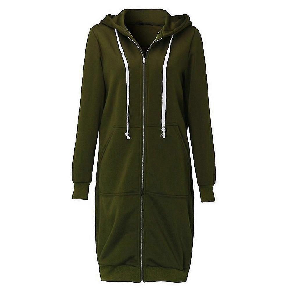 (S-5XL) Chic Lady Solid Color Long Sleeve Casual Hooded Sweatshirt Coat Zipper Outwear