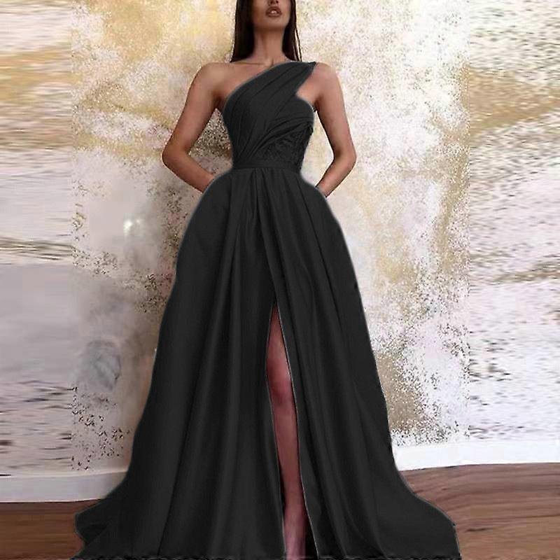 S1604 Summer Slit Slanted Shoulder Dress Maxi Evening Dress