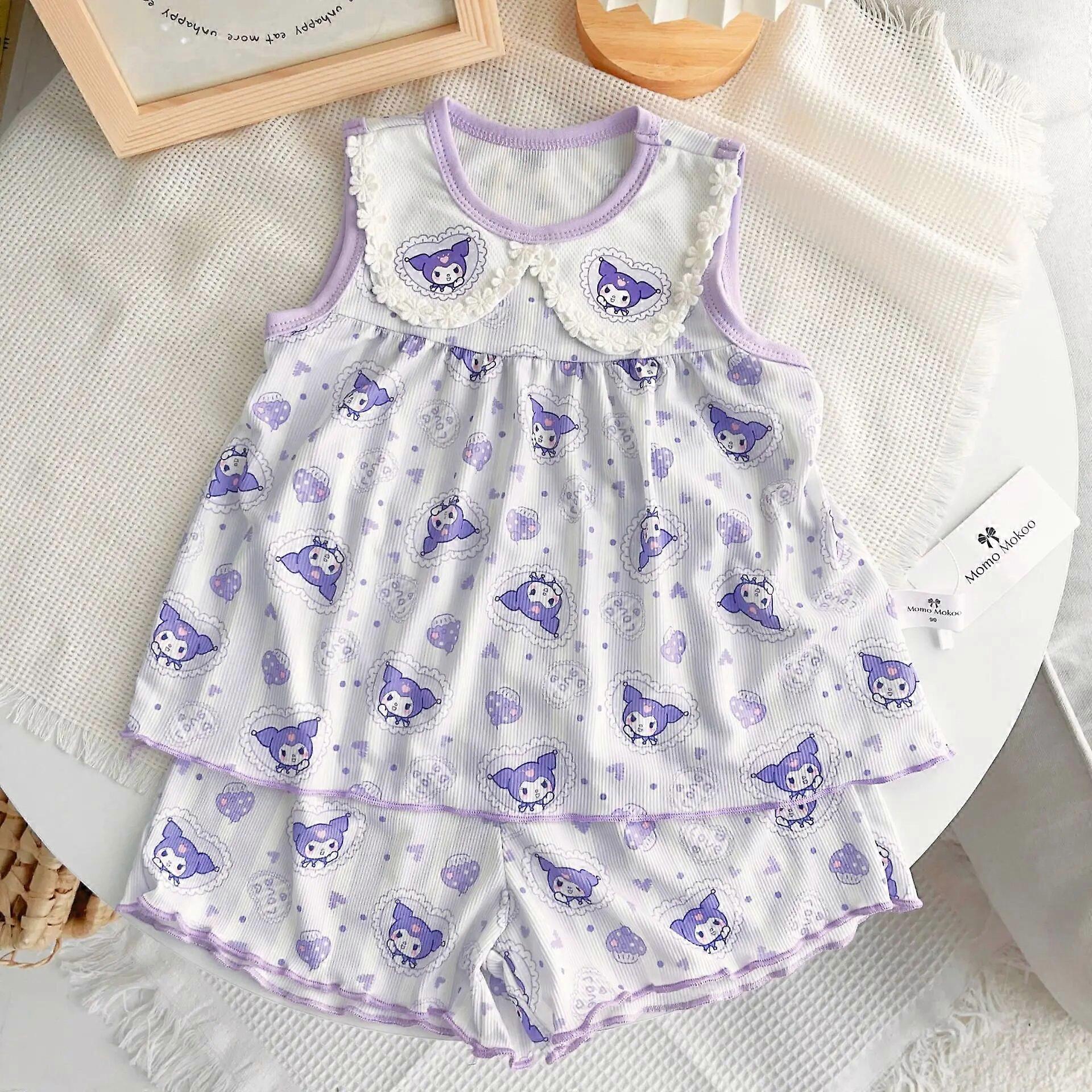 Sanrio Kawaii Cinnamoroll Kuromi My Melody Summer Children Clothing New Ice Silk Vest Short Sleeve Shorts Cartoon Homewear Gift