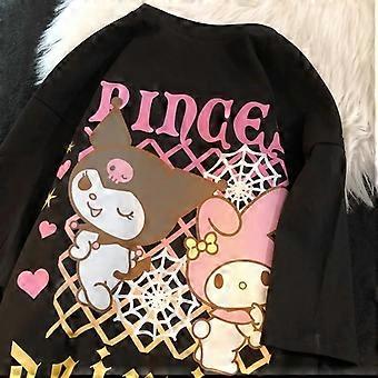 Sanrios Kawaii Anime My Melody Kuromi Cute Cartoon Cotton Short Sleeve T-Shirt Student Loose All-Match Top Birthday Gift
