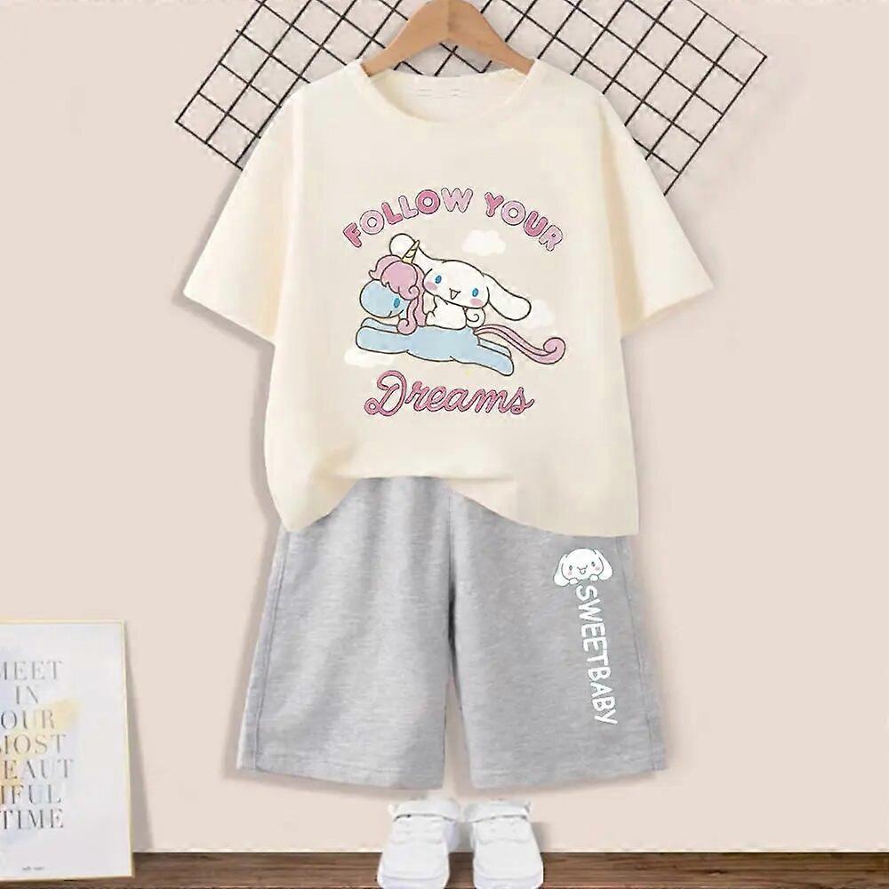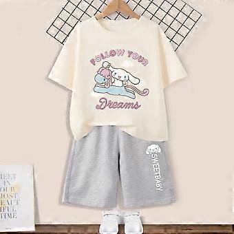 Sanrios Kawaii Anime Cinnamoroll Cute Cartoon Summer Thin Cotton Short Sleeve Kids Casual Sportswear Two-Piece Set Birthday Gift