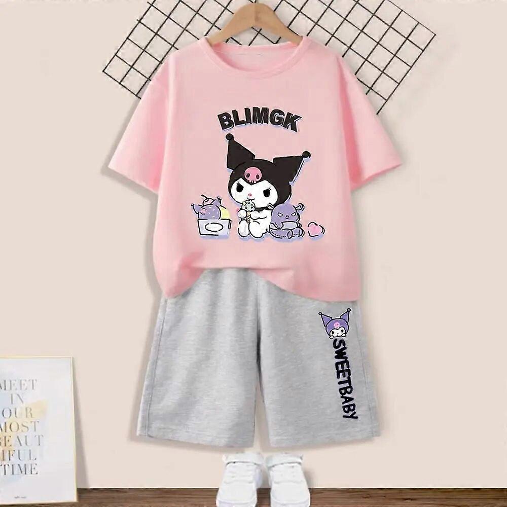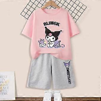 Sanrios Kawaii Anime Kuromi Cute Cartoon Summer Kids Loose Casual Short-Sleeved T-Shit Shorts Sportswear Set Birthday Gift