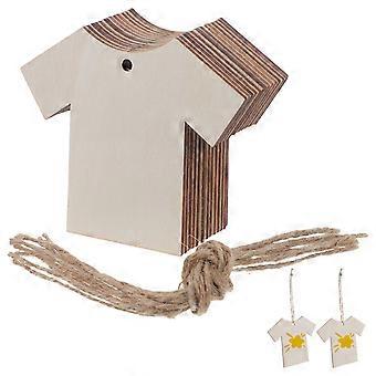 תגיות DIY מעץ לקישוט 20 יחידות חולצה בצורת תוויות ריקות עם חוטים