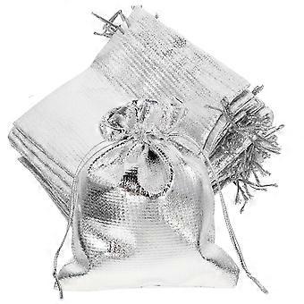 שקיות בד קטנות עם שרוך לאחסון ואריזה בצבע כסף אלגנטי, 30 יחידות